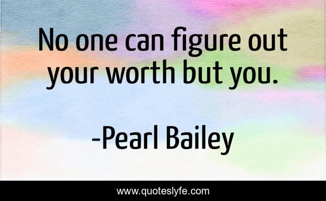This page presents the quote "No one can figure out your worth but you.". Author of this quote is Pearl Bailey. This quote is about self, knowledge,.