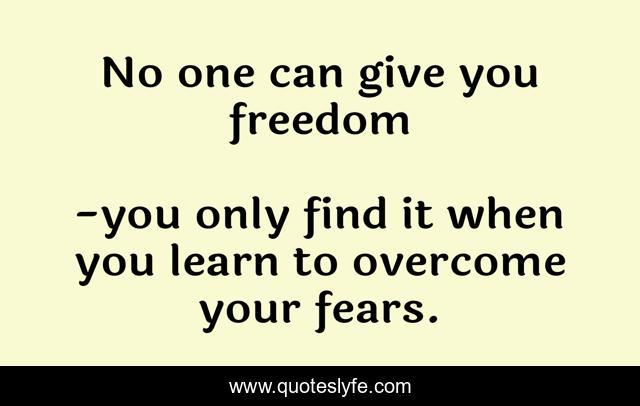 "you only find it when you learn to overcome your fears. Quotes." Quoteslyfe.com, 2025. Sat. 06 Dec. 2025. <https://www.quoteslyfe.com/quote/No-one-can-give-you-freedom-23428>.