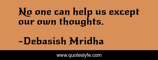 This page presents the quote "No one can help us except our own thoughts.". Author of this quote is Debasish Mridha. This quote is about debasish, help, mridha, no-one-can-help, philosophy, debasish-mridha, own-thoughts,.