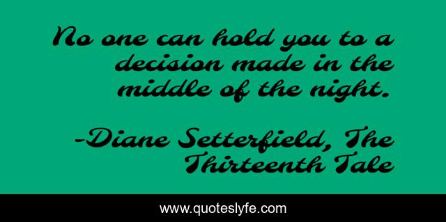This page presents the quote "No one can hold you to a decision made in the middle of the night.". Author of this quote is Diane Setterfield, The Thirteenth Tale. .