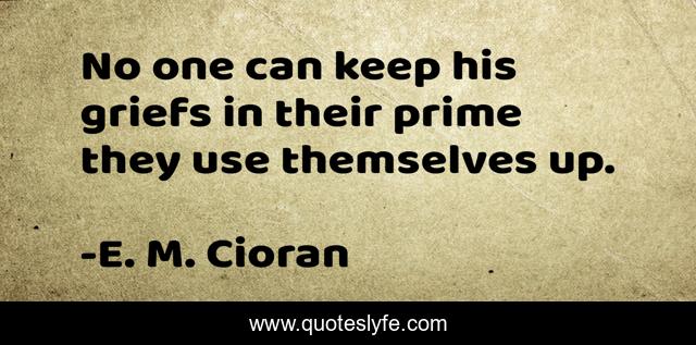 This page presents the quote "No one can keep his griefs in their prime they use themselves up.". Author of this quote is E. M. Cioran. .