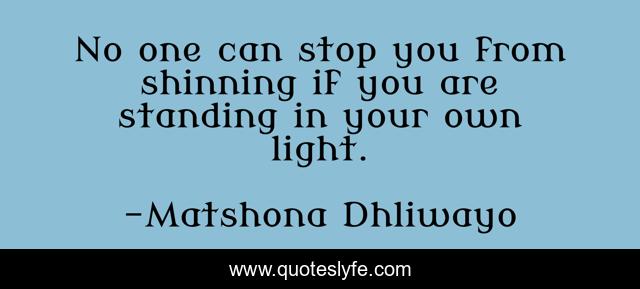 "Matshona Dhliwayo Quotes." Quoteslyfe.com, 2025. Sun. 07 Dec. 2025. <https://www.quoteslyfe.com/quote/No-one-can-stop-you-from-shinning-109077>.
