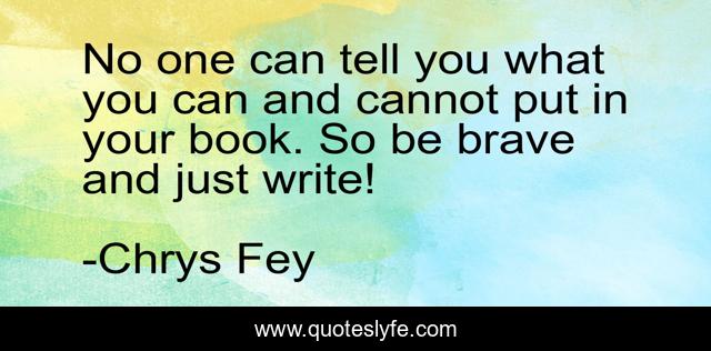 This page presents the quote "No one can tell you what you can and cannot put in your book. So be brave and just write!". Author of this quote is Chrys Fey. This quote is about bravery, writing-a-book, writing-from-the-heart, writing,.