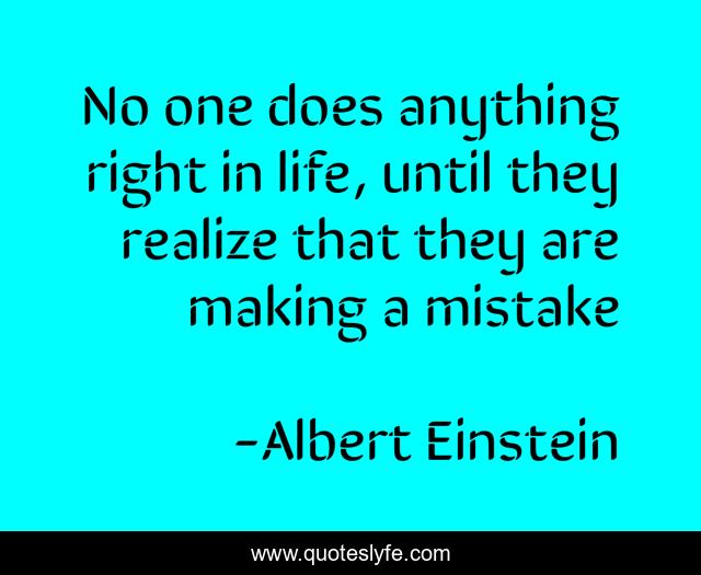 This page presents the quote "No one does anything right in life, until they realize that they are making a mistake". Author of this quote is Albert Einstein. .