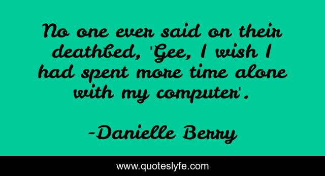 This page presents the quote "No one ever said on their deathbed, 'Gee, I wish I had spent more time alone with my computer'.". Author of this quote is Danielle Berry. This quote is about alone, wish, time,.
