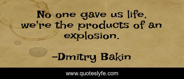 This page presents the quote "No one gave us life, we're the products of an explosion.". Author of this quote is Dmitry Bakin. This quote is about origin, enthusiasm, life, deep, inspirational,.