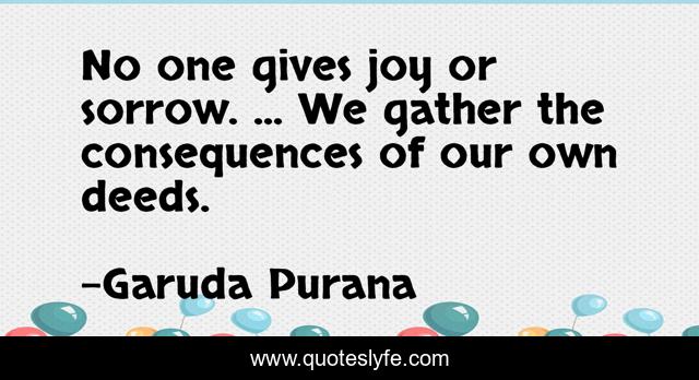 This page presents the quote "No one gives joy or sorrow. ... We gather the consequences of our own deeds.". Author of this quote is Garuda Purana. .