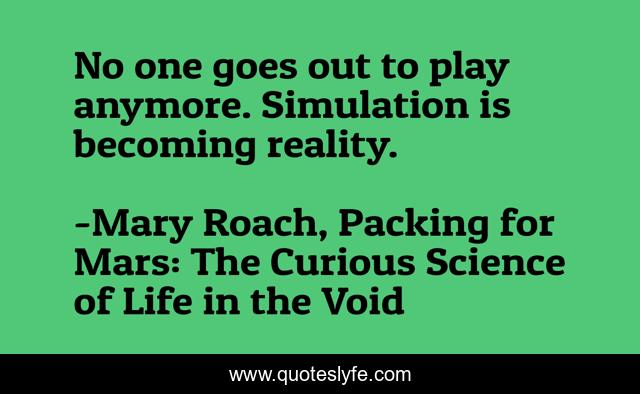 This page presents the quote "No one goes out to play anymore. Simulation is becoming reality.". Author of this quote is Mary Roach, Packing for Mars: The Curious Science of Life in the Void. This quote is about mars, space,.
