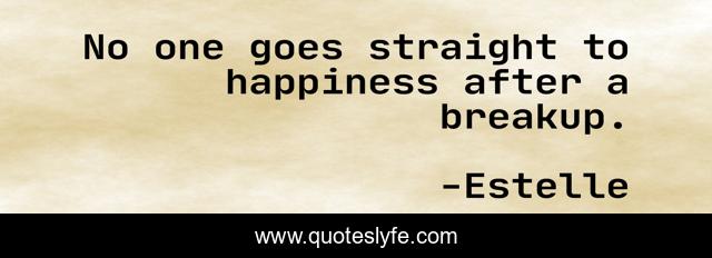 This page presents the quote "No one goes straight to happiness after a breakup.". Author of this quote is Estelle. This quote is about breakup, straight, after,.