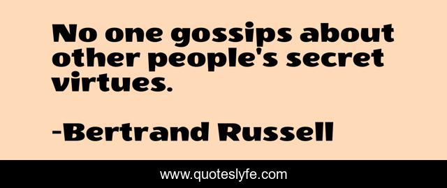 This page presents the quote "No one gossips about other people's secret virtues.". Author of this quote is Bertrand Russell. This quote is about gossip, gossips,.