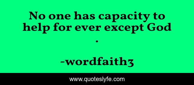 This page presents the quote "No one has capacity to help for ever except God .". Author of this quote is wordfaith3. .