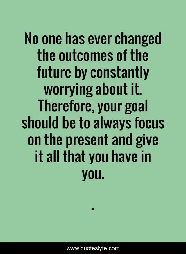 No one has ever changed the outcomes of the future by constantly worrying about it. Therefore, your goal should be to always focus on the present and give it all that you have in you.