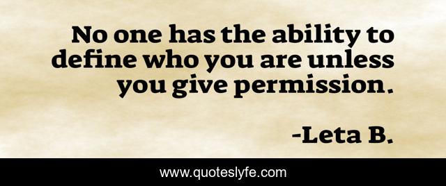 This page presents the quote "No one has the ability to define who you are unless you give permission.". Author of this quote is Leta B.. This quote is about inspirational-life, enthusiasm, inspirational,.