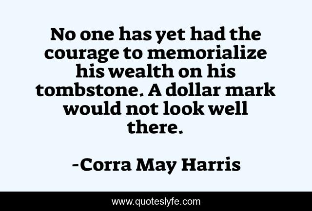 This page presents the quote "No one has yet had the courage to memorialize his wealth on his tombstone. A dollar mark would not look well there.". Author of this quote is Corra May Harris. .