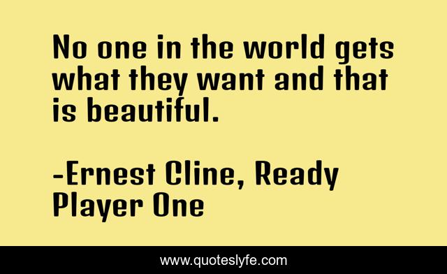 This page presents the quote "No one in the world gets what they want and that is beautiful.". Author of this quote is Ernest Cline, Ready Player One. This quote is about pessimistic, they-might-be-giants, humor, tmbw,.