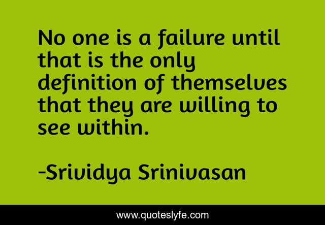 "Srividya Srinivasan Quotes." Quoteslyfe.com, 2025. Fri. 05 Dec. 2025. <https://www.quoteslyfe.com/quote/No-one-is-a-failure-until-that-144859>.