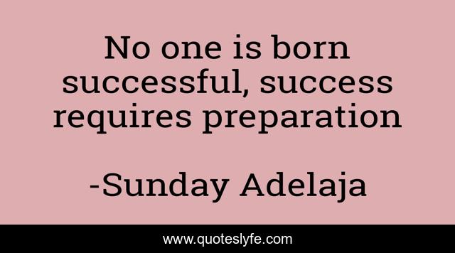 This page presents the quote "No one is born successful, success requires preparation". Author of this quote is Sunday Adelaja. This quote is about life, success, people, successful, self-development, calling, preparation, purpose, truth,.