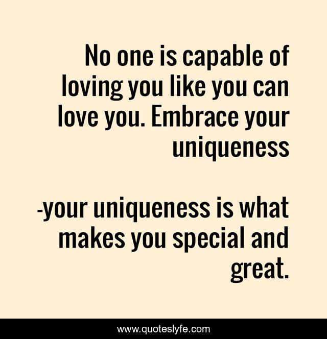 "your uniqueness is what makes you special and great. Quotes." Quoteslyfe.com, 2025. Mon. 08 Dec. 2025. <https://www.quoteslyfe.com/quote/No-one-is-capable-of-loving-you-231922>.
