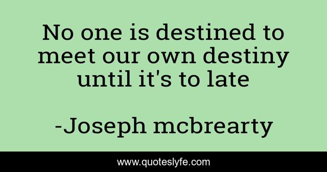 This page presents the quote "No one is destined to meet our own destiny until it's to late". Author of this quote is Joseph mcbrearty. .