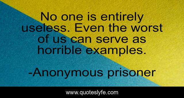 This page presents the quote "No one is entirely useless. Even the worst of us can serve as horrible examples.". Author of this quote is Anonymous prisoner. This quote is about punishment, crime,.