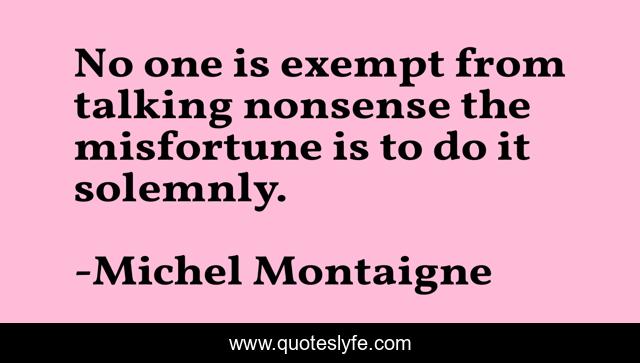 This page presents the quote "No one is exempt from talking nonsense the misfortune is to do it solemnly.". Author of this quote is Michel Montaigne. .