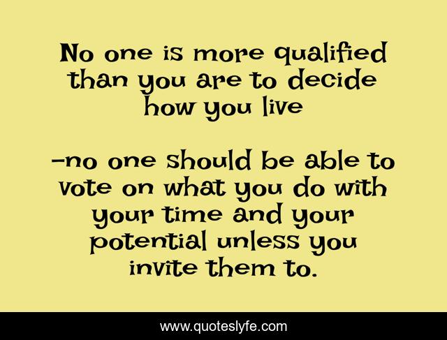 "no one should be able to vote on what you do with your time and your potential unless you invite them to. Quotes." Quoteslyfe.com, 2025. Fri. 05 Dec. 2025. <https://www.quoteslyfe.com/quote/No-one-is-more-qualified-than-you-54368>.