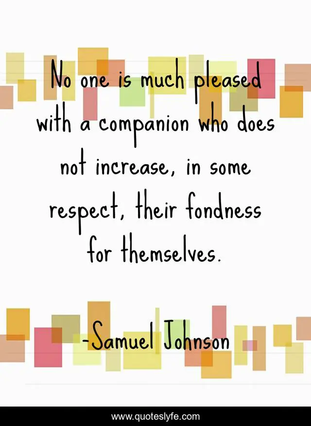 This page presents the quote "No one is much pleased with a companion who does not increase, in some respect, their fondness for themselves.". Author of this quote is Samuel Johnson. .