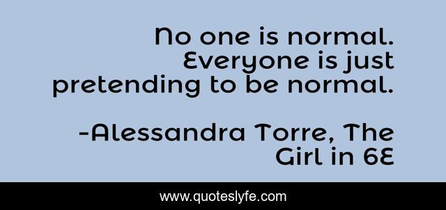 This page presents the quote "No one is normal. Everyone is just pretending to be normal.". Author of this quote is Alessandra Torre, The Girl in 6E. This quote is about humorous, advice, reality,.
