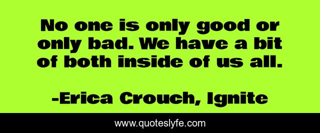This page presents the quote "No one is only good or only bad. We have a bit of both inside of us all.". Author of this quote is Erica Crouch, Ignite. This quote is about good-vs-evil, erica-crouch, angels, ignite,.
