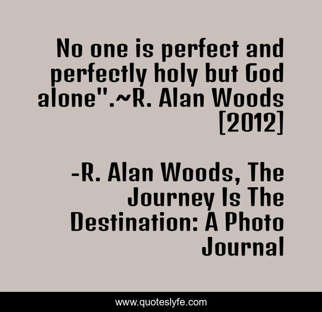 This page presents the quote "No one is perfect and perfectly holy but God alone".~R. Alan Woods [2012]". Author of this quote is R. Alan Woods, The Journey Is The Destination: A Photo Journal. This quote is about r-alan-woods, perfection,.