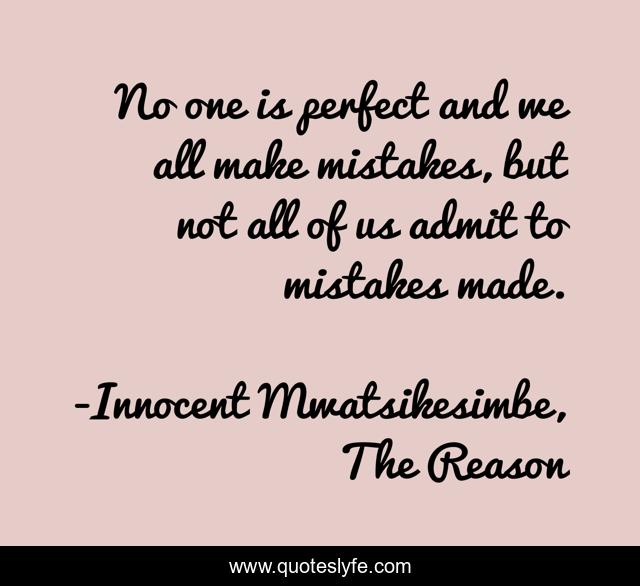 This page presents the quote "No one is perfect and we all make mistakes, but not all of us admit to mistakes made.". Author of this quote is Innocent Mwatsikesimbe, The Reason. This quote is about life, character, imperfection, mistakes, self-improvement, self-help,.