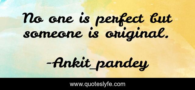 This page presents the quote "No one is perfect but someone is original.". Author of this quote is Ankit_pandey. This quote is about someone, no-one, original, perfection,.