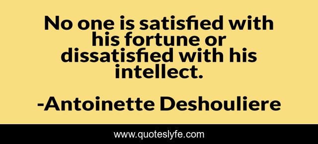 This page presents the quote "No one is satisfied with his fortune or dissatisfied with his intellect.". Author of this quote is Antoinette Deshouliere. .