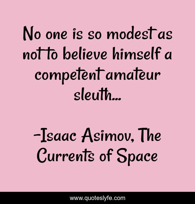 This page presents the quote "No one is so modest as not to believe himself a competent amateur sleuth...". Author of this quote is Isaac Asimov, The Currents of Space. This quote is about dilettante, pride,.