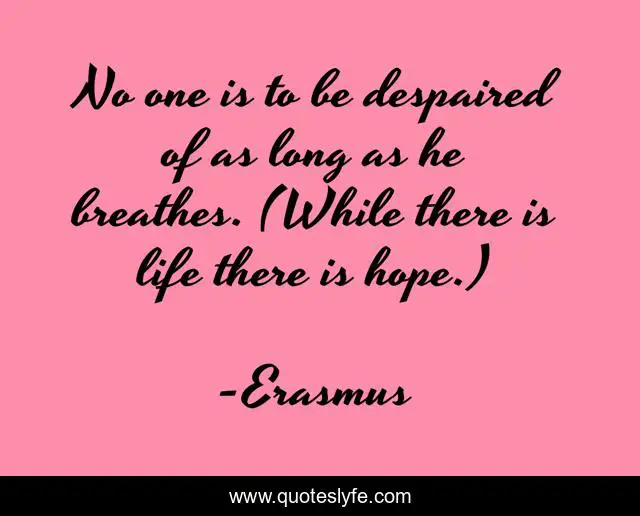 This page presents the quote "No one is to be despaired of as long as he breathes. (While there is life there is hope.)". Author of this quote is Erasmus. .