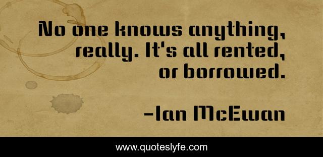 This page presents the quote "No one knows anything, really. It's all rented, or borrowed.". Author of this quote is Ian McEwan. .