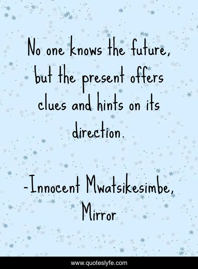 "Innocent Mwatsikesimbe, Mirror Quotes." Quoteslyfe.com, 2025. Fri. 05 Dec. 2025. <https://www.quoteslyfe.com/quote/No-one-knows-the-future-but-the-110255>.