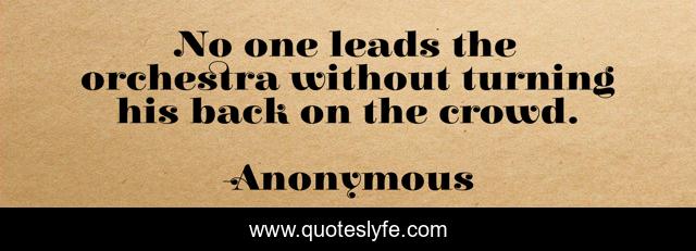 This page presents the quote "No one leads the orchestra without turning his back on the crowd.". Author of this quote is Anonymous. .