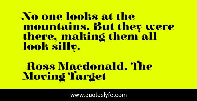 This page presents the quote "No one looks at the mountains. But they were there, making them all look silly.". Author of this quote is Ross Macdonald, The Moving Target. .