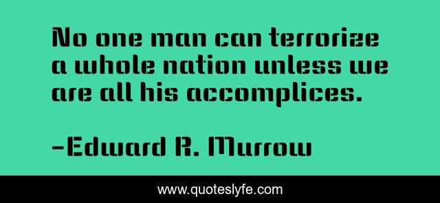 "Edward R. Murrow Quotes." Quoteslyfe.com, 2025. Sun. 07 Dec. 2025. <https://www.quoteslyfe.com/quote/No-one-man-can-terrorize-a-whole-56948>.