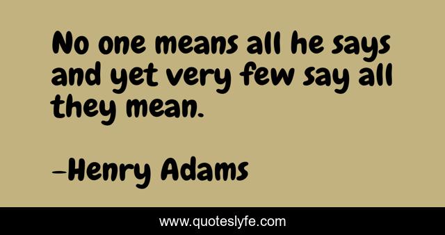 This page presents the quote "No one means all he says and yet very few say all they mean.". Author of this quote is Henry Adams. .