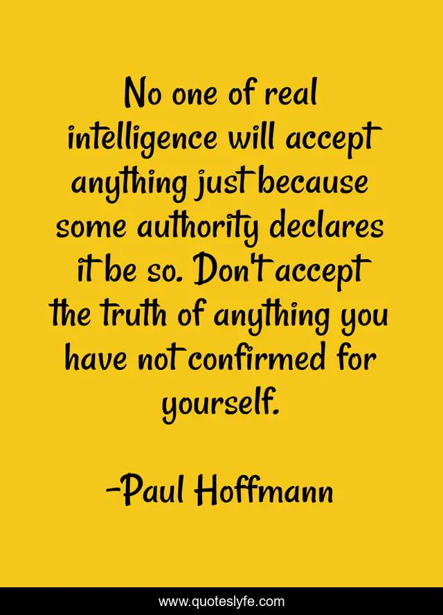 "Paul Hoffmann Quotes." Quoteslyfe.com, 2025. Sat. 06 Dec. 2025. <https://www.quoteslyfe.com/quote/No-one-of-real-intelligence-will-accept-14285>.