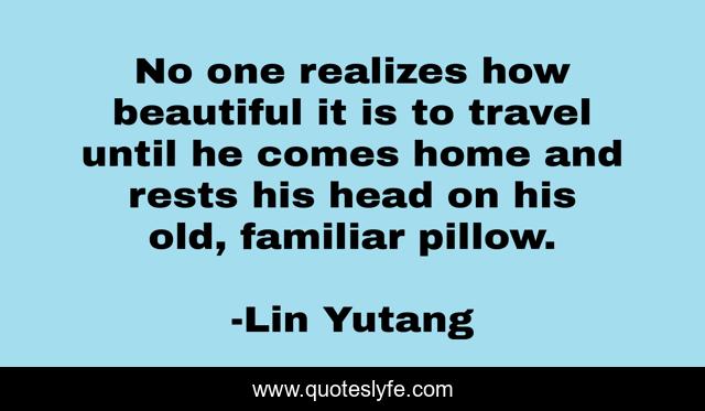 This page presents the quote "No one realizes how beautiful it is to travel until he comes home and rests his head on his old, familiar pillow.". Author of this quote is Lin Yutang. .