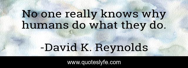 This page presents the quote "No one really knows why humans do what they do.". Author of this quote is David K. Reynolds. This quote is about constructive-living, morita-therapy, human-behavior, psychology,.