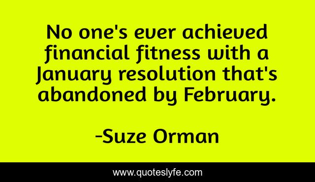 This page presents the quote "No one's ever achieved financial fitness with a January resolution that's abandoned by February.". Author of this quote is Suze Orman. This quote is about financial, fitness,.