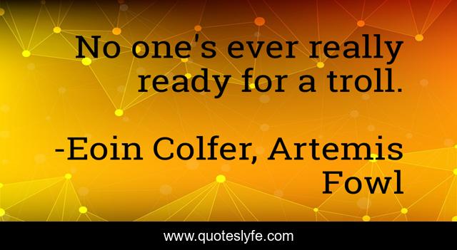 This page presents the quote "No one's ever really ready for a troll.". Author of this quote is Eoin Colfer, Artemis Fowl. This quote is about preparation, funny, troll, comedy,.