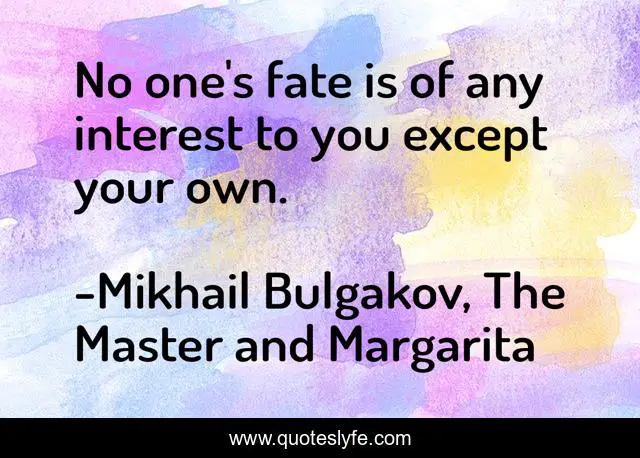 This page presents the quote "No one's fate is of any interest to you except your own.". Author of this quote is Mikhail Bulgakov, The Master and Margarita. This quote is about mikhail-bulgakov, fate, master-and-margarita,.