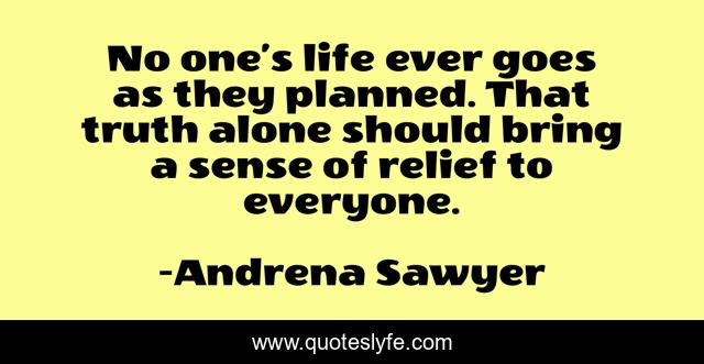 This page presents the quote "No one’s life ever goes as they planned. That truth alone should bring a sense of relief to everyone.". Author of this quote is Andrena Sawyer. This quote is about getting-older, competition, contentment, comparison-to-others, happiness,.