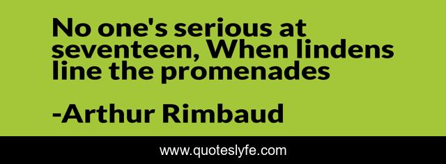 This page presents the quote "No one's serious at seventeen, When lindens line the promenades". Author of this quote is Arthur Rimbaud. This quote is about youth, french-poetry, french-literature, rimbaud,.