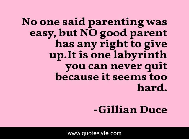 No one said parenting was easy, but NO good parent has any right to give up.It is one labyrinth you can never quit because it seems too hard.
